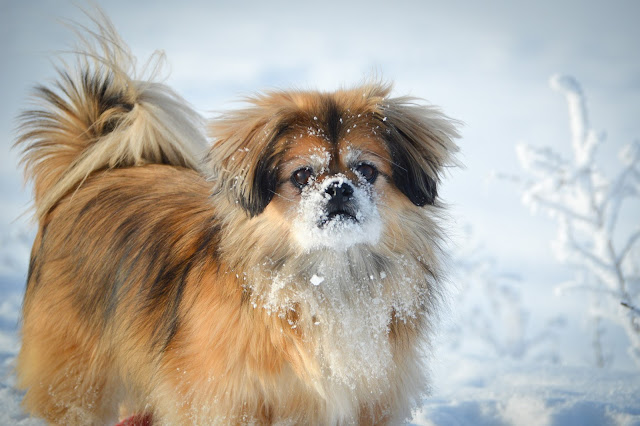 Yesterday Baxter and I went on snow adventures in the -15°C snow. I made an executive decision that -15°C is too cold for naked baby black dogs, at least until I buy a better coat for him. (Also I only have one pair of booties that will fit the boys, and I knew Baxter would need them.)
